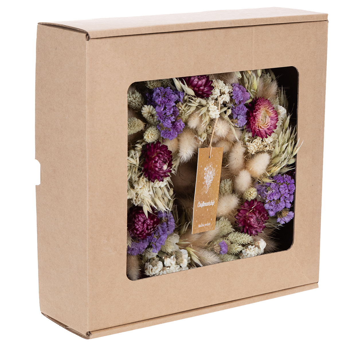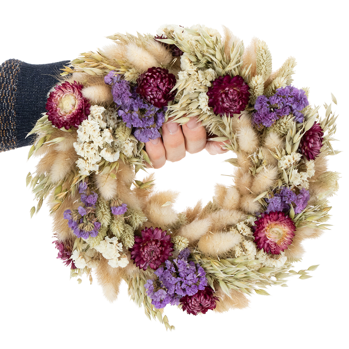 Starostlivosť je obzvlášť jednoduchá: Jemne poklepte vencom, aby ste odstránili prach, a vyhnite sa priamemu slnečnému žiareniu, aby sa zachovali farby. Vaša slávnostná dekorácia zo sušených kvetov tak bude vždy skutočným pútačom pozornosti!