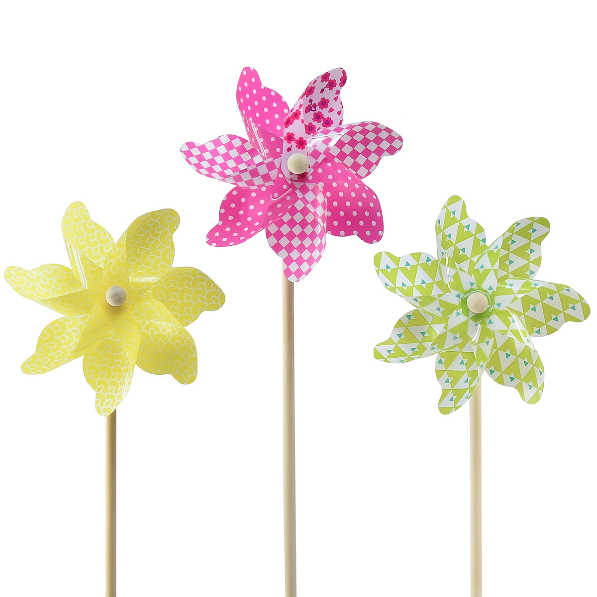 Veterník Ružová Žltá Zelená Veterný mlyn Dekorácia na balkón Ø15cm 3ks