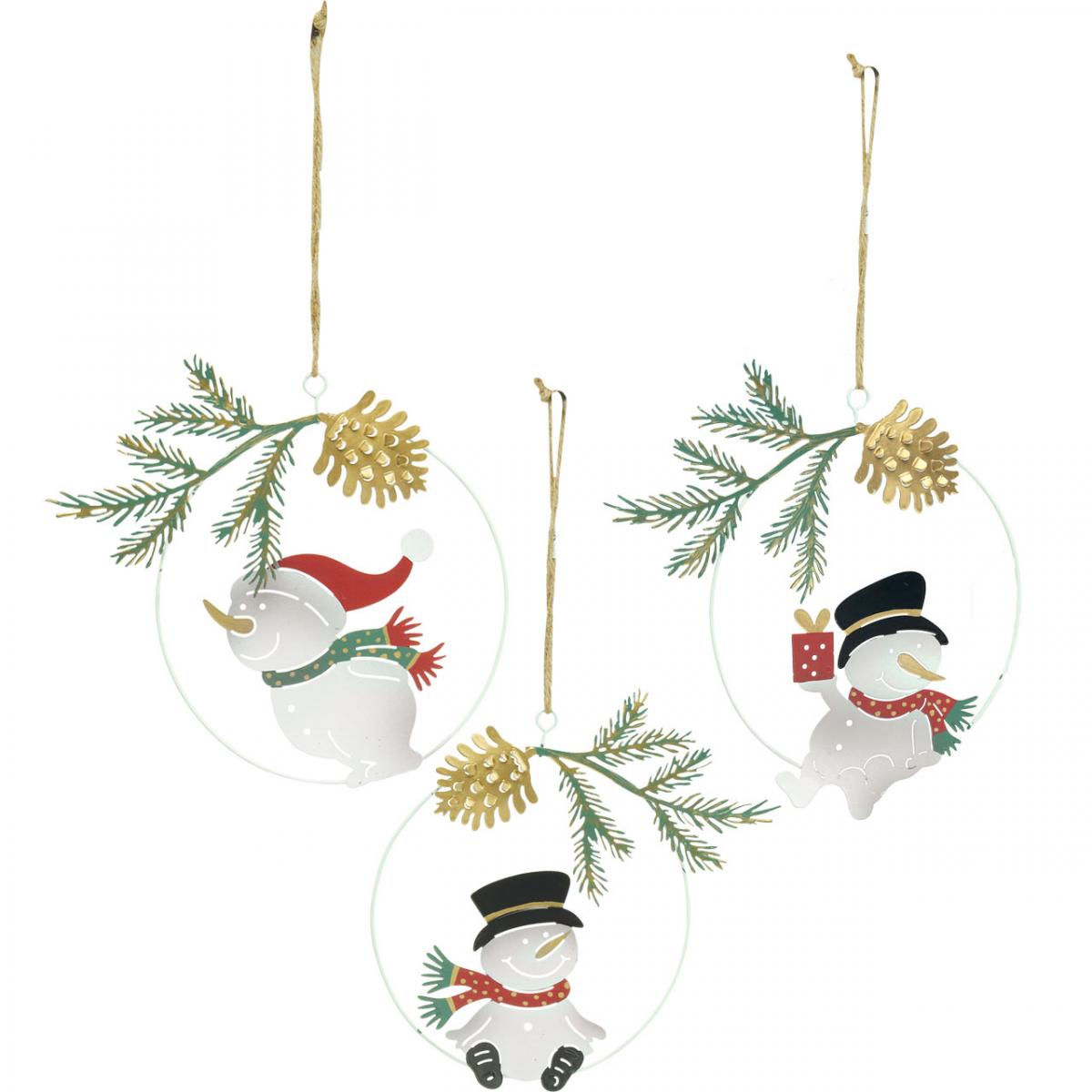 Vianočný prívesok dekorácia snehuliaka prsteň kovový Ø14cm 3ks