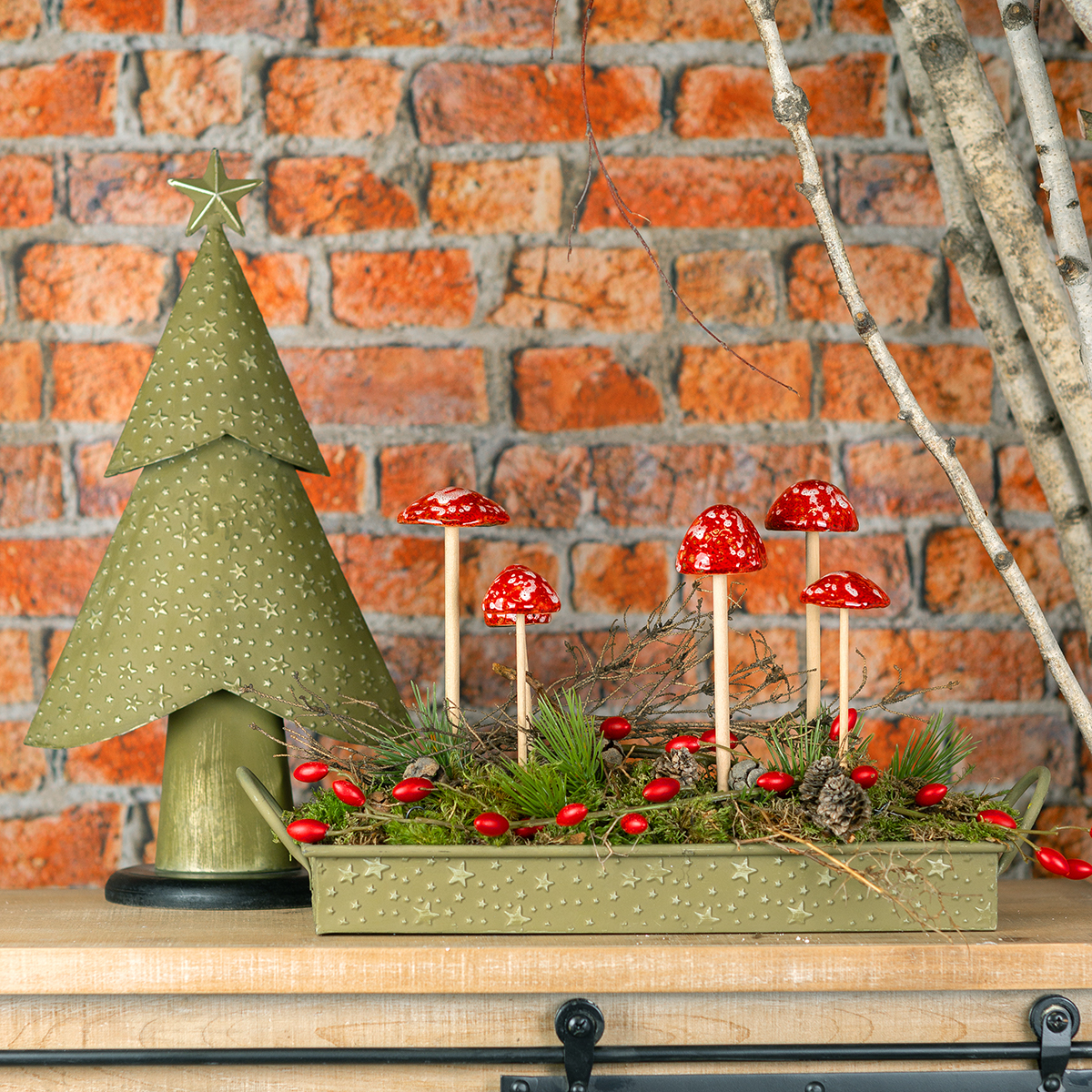 Vrcholom je vianočná hviezda, ktorá sedí na vrchole stromu a ctí vašu sviatočnú sezónu svojou jednoduchou krásou. Kovový vianočný stromček je súčasťou väčšej série, preto v našom obchode nájdete aj ďalšie kovové ozdoby a kvetináče v rovnakom dizajne. V našom sortimente pre vás máme aj väčšiu verziu.