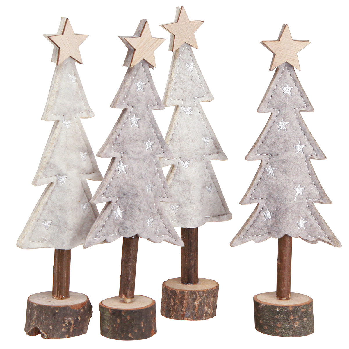 Vianočný stromček vyrobený z filcovej ozdoby s hviezdicovou krémovou béžovou 18cm 4 ks