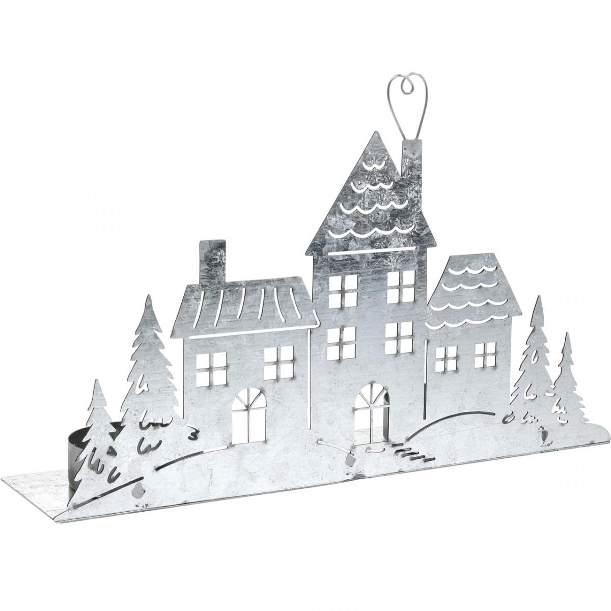 Názov produktu: Vianočná dekorácia domčeky, svietnik na čajovú sviečku kovový L20cm