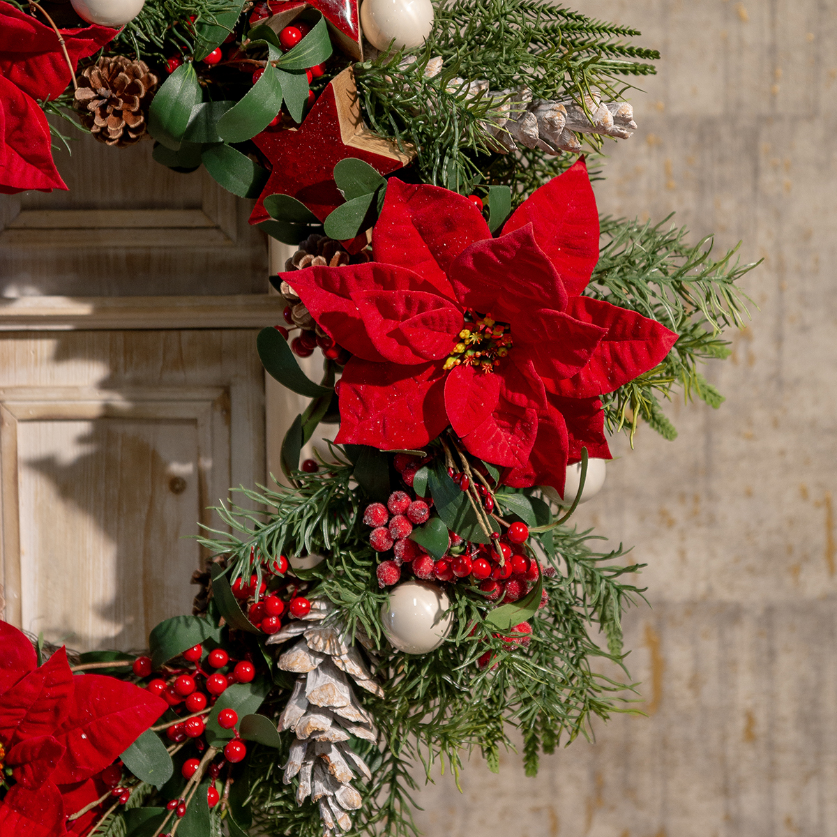 Zažite hrejivé vyžarovanie našich umelých vianočných hviezd, ktorých realistický vzhľad vás poteší zamatovo červenými a jemnými zelenými listami. Každá stopka je vystužená kovovým jadrom, ktoré ponúka flexibilné možnosti dekorácie. Dodajte každej miestnosti nádych klasickej vianočnej elegancie s týmito umelými kvetmi – bez akejkoľvek ďalšej starostlivosti.