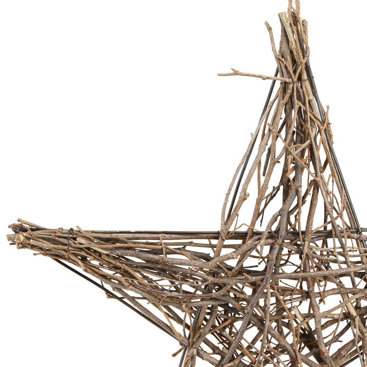 Vianočná hviezda bola vyrobená na zavesenie s veľkým dôrazom na detail priviazaním prírodných konárov k pevnej kovovej konštrukcii. Kovová konštrukcia vianočnej dekorácie zostáva takmer neviditeľná, no hviezde dodáva stabilitu. To znamená, že konáre v tejto závesnej dekorácii nerušene rozvíjajú svoj jedinečný rustikálny vzhľad. To znamená, že vianočná hviezda dáva moderný aj klasický štýl bývania.