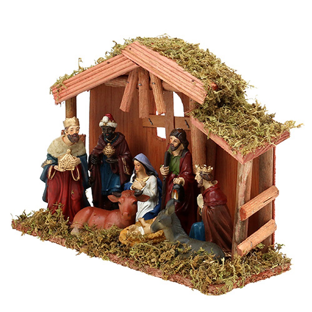 Betlehem je vyrobený z dreva a machu, figúrky z polyresinu. Rozmery vianočnej stajne sú približne 30 x 21 x 10 centimetrov.