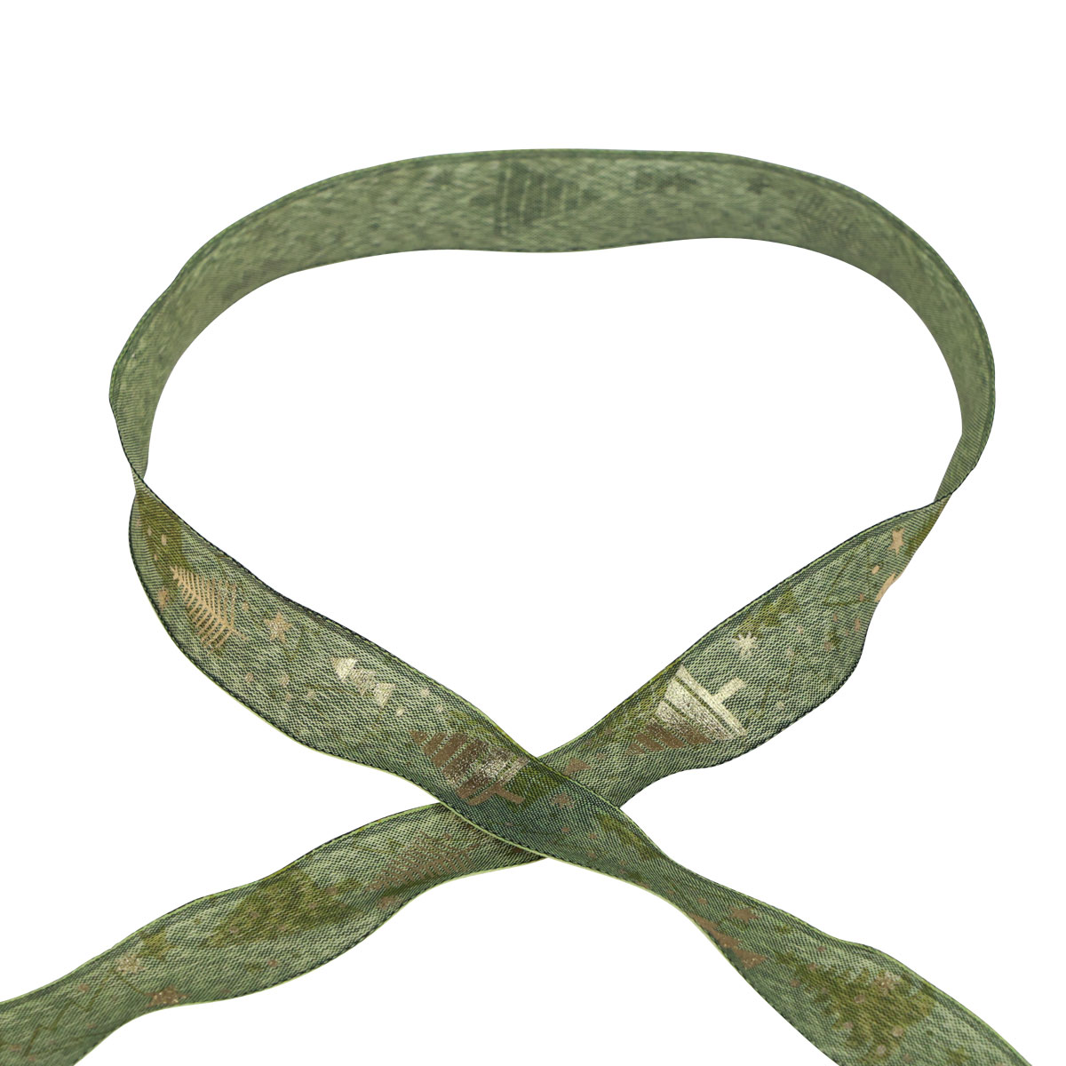 Vianočná stuha jedľová darčeková stuha zelená zlatá 25mm 15m
