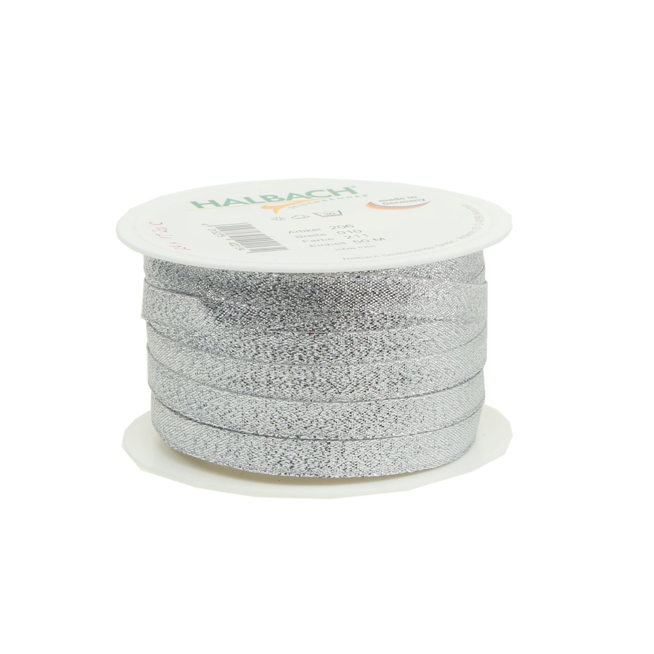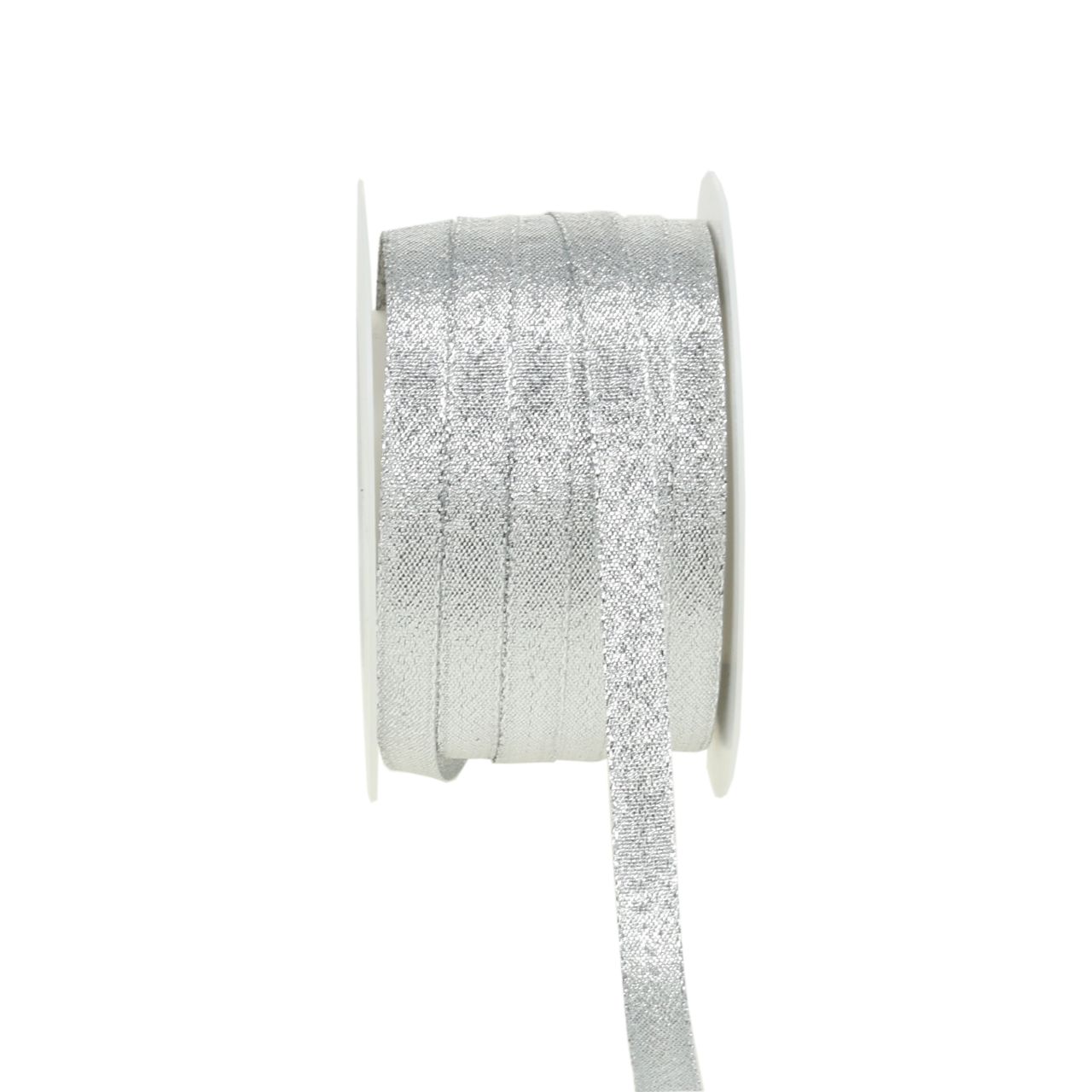 Strieborná Lurexová vianočná stuha je dodávaná na praktickej plastovej cievke. Jeho dĺžka je asi 50 metrov, šírka asi 1 centimeter.