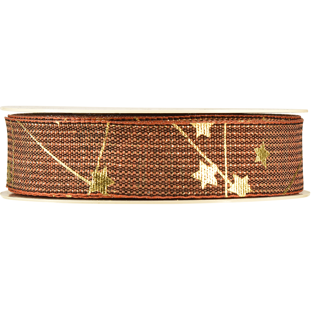 Názov produktu: Vianočná stuha s hviezdičkami ozdobná stuha hnedo zlatá 25mm 18m