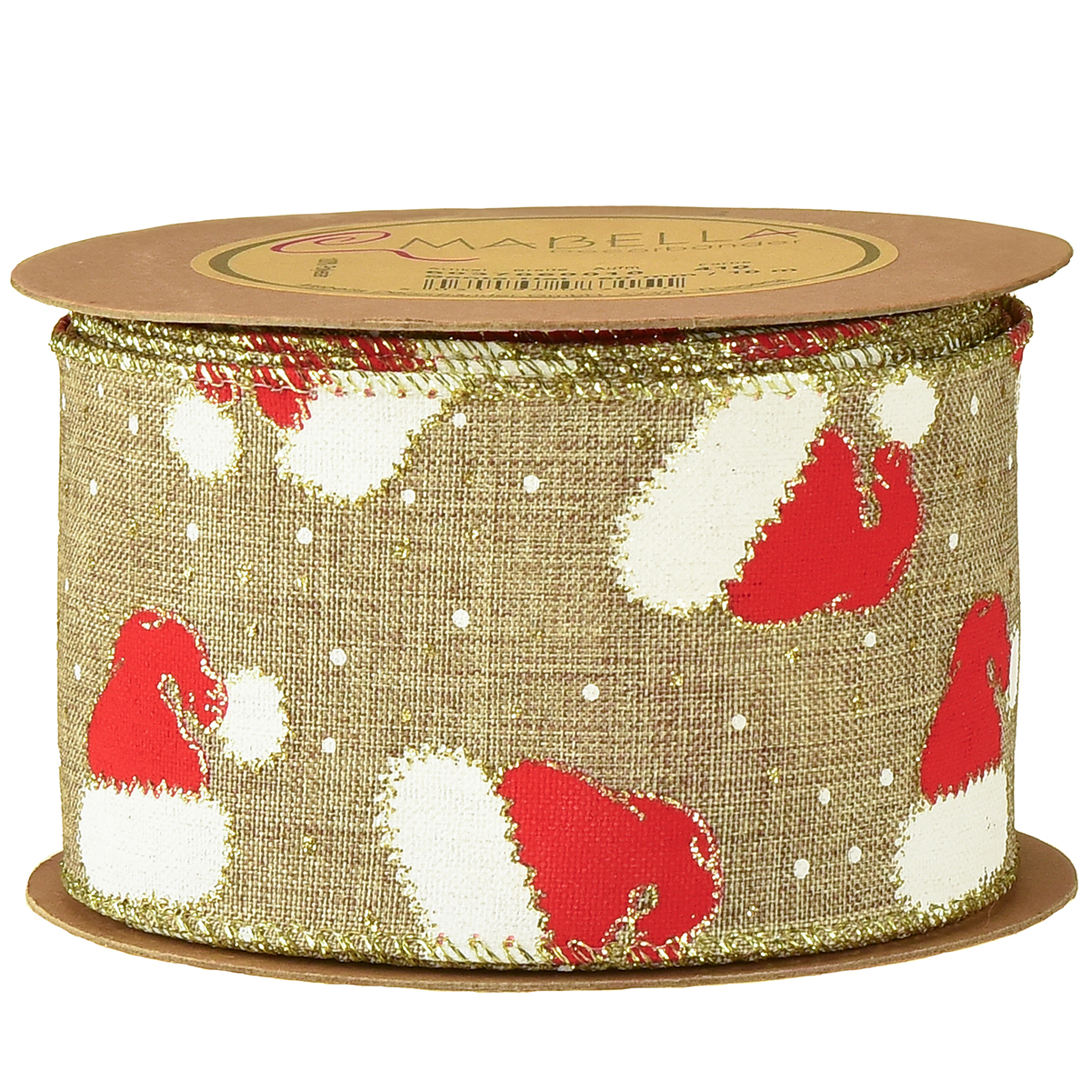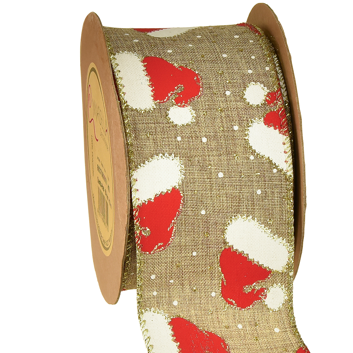 Názov produktu: Vianočná stuha so Santovskými čiapkami, hnedá, 60 mm, 10 m