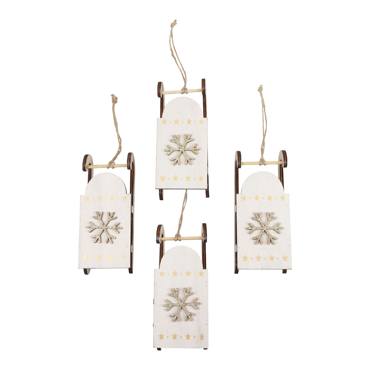Vianočné sane drevené biele/zlaté 15,5x6,5x4cm 4ks