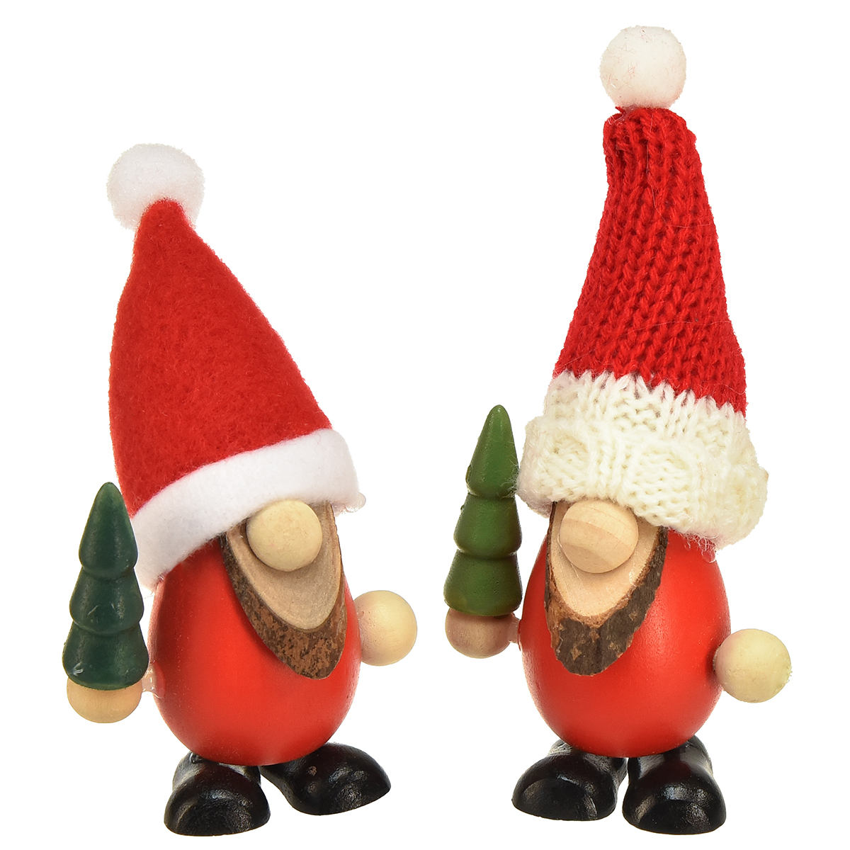 Vianoční trpaslíci ozdobní trpaslíci drevo červená zelená H10,5/12cm 6 kusov