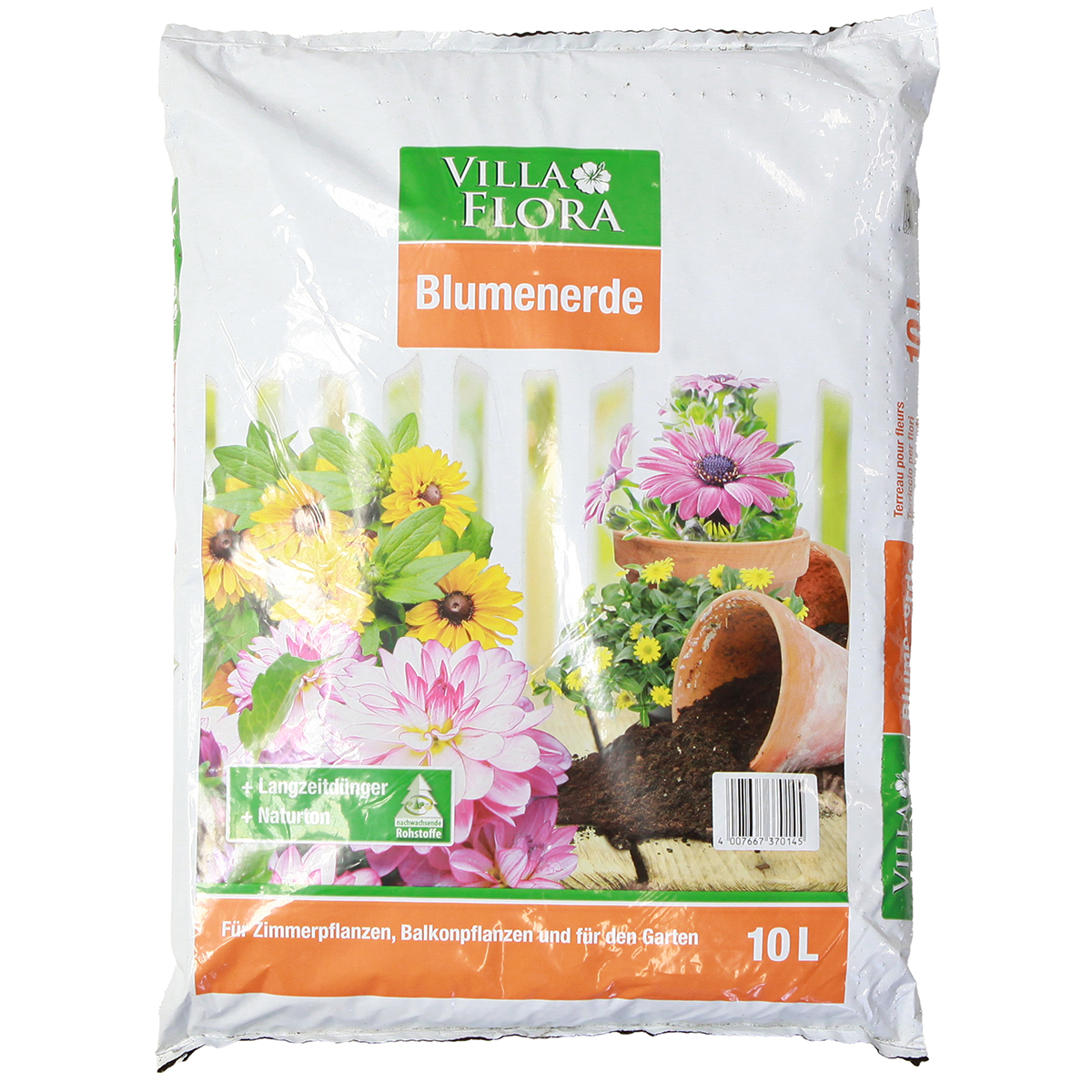 Črepníková zemina Villa Flora s pridaným dlhodobým hnojivom zaručuje nepretržitý prísun živín na 6 až 8 týždňov, aby bolo o vaše rastliny vždy dobre postarané. Prírodný íl, ktorý obsahuje, reguluje vlhkosť - ideálne na pestovanie rastlín aj v chladnejších mesiacoch. 10-litrová taška ponúka dostatok objemu pre všestranné možnosti dizajnu v domácej záhrade alebo byte!