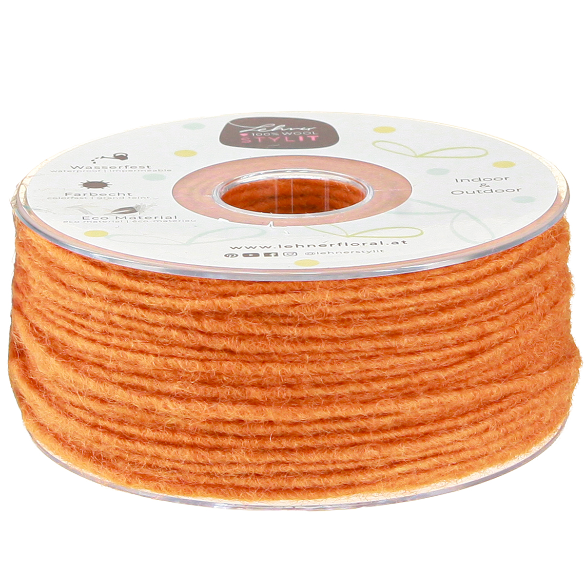 Oranžová vlnená šnúra je dlhá asi 100 metrov a hrubá asi 3 milimetre, hoci sa táto hrúbka môže mierne líšiť v dôsledku pružnosti materiálu. Ozdobnú šnúru zo 75% vlny a 25% juty dostanete navinutú na plastovej cievke.