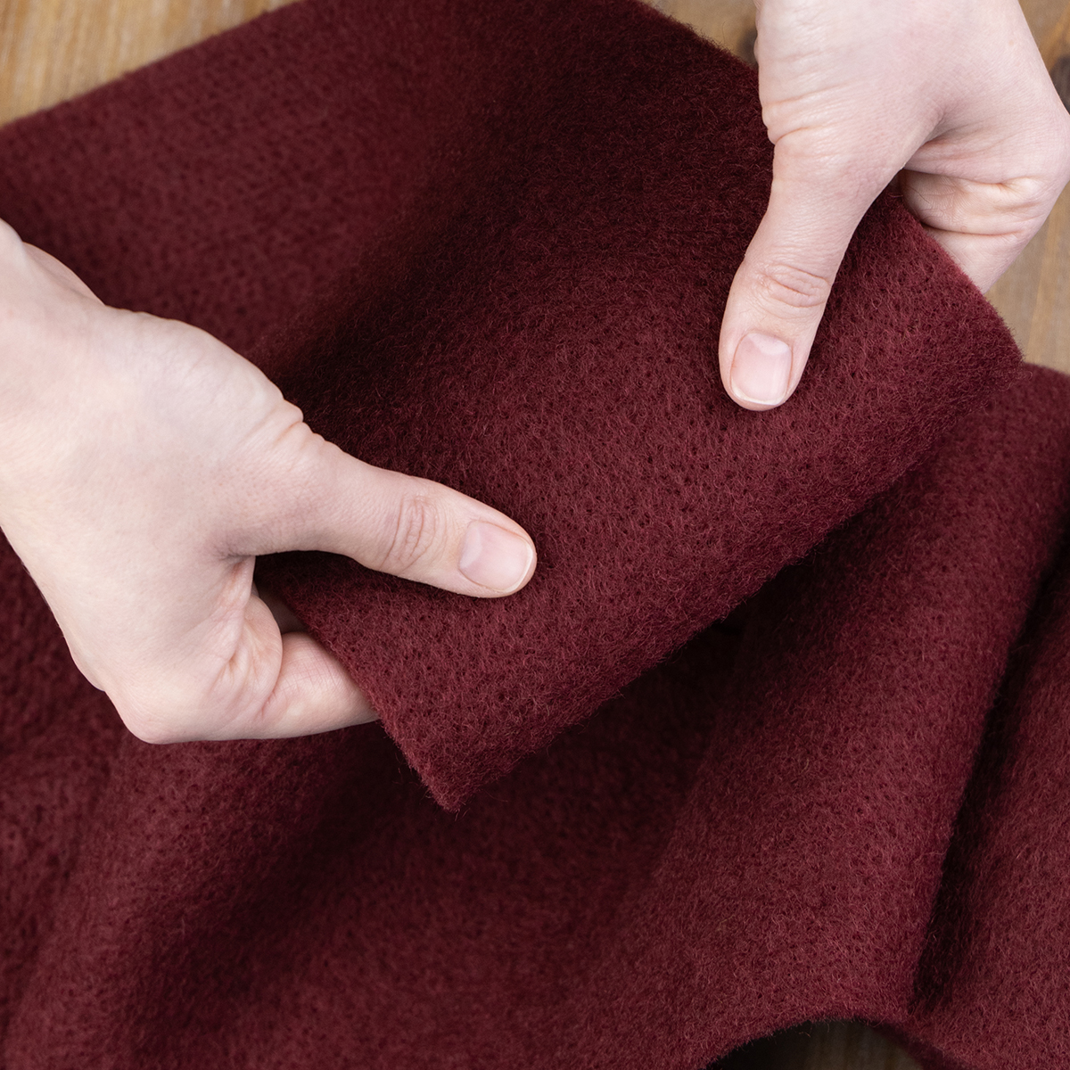 Vlnená stuha z plsti, tmavočervená, 15 cm x 5 m, na dekoráciu a tvorenie