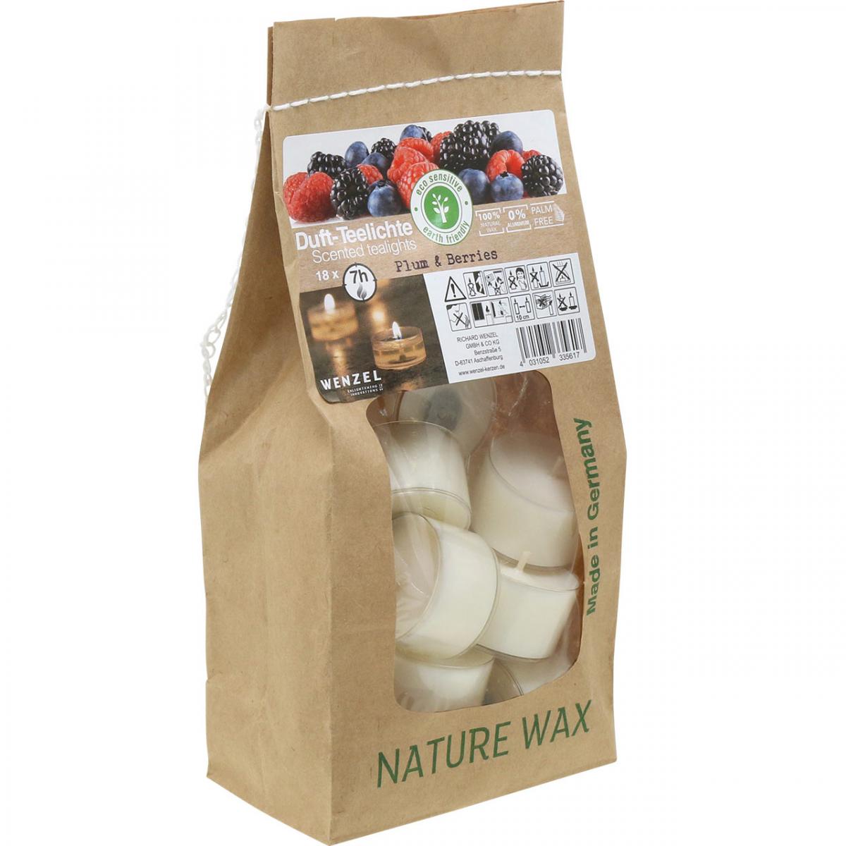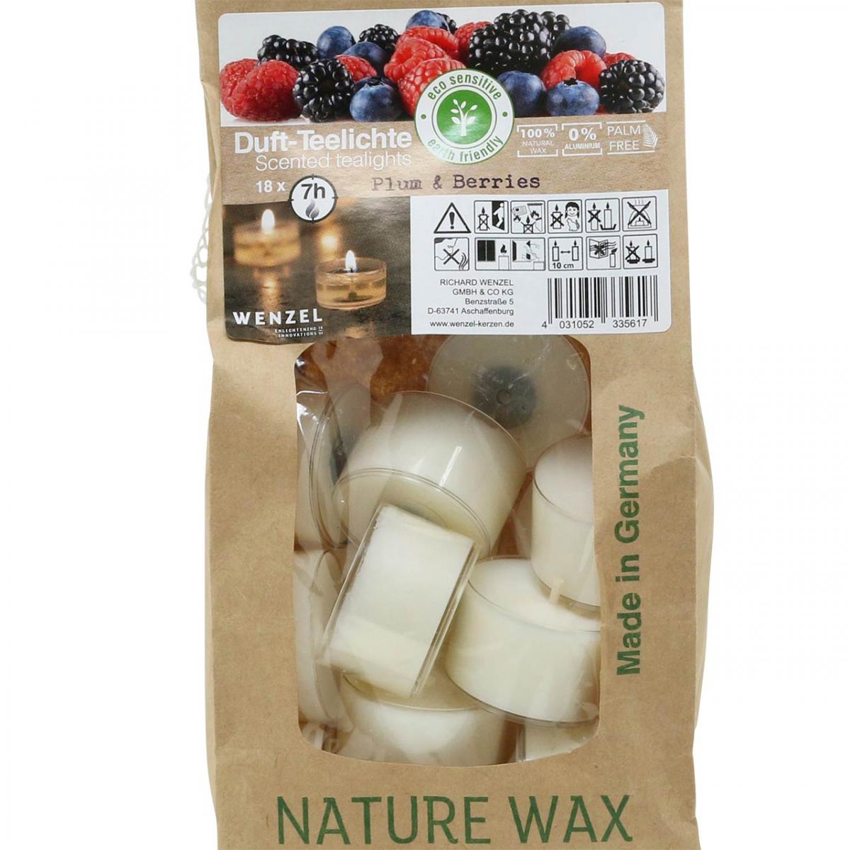 Voňavé čajové sviečky v bielej farbe sú v balení po 18 ks v šitom papierovom vrecúšku s okienkom. Hneď ako ich vyberiete, voskové sviečky vyžarujú svoju prirodzenú, sladkú, lahodnú bobuľovú vôňu. Keď ich zapálite, príjemná vôňa čajových sviečok s vôňou lesných plodov sa ešte zintenzívni.