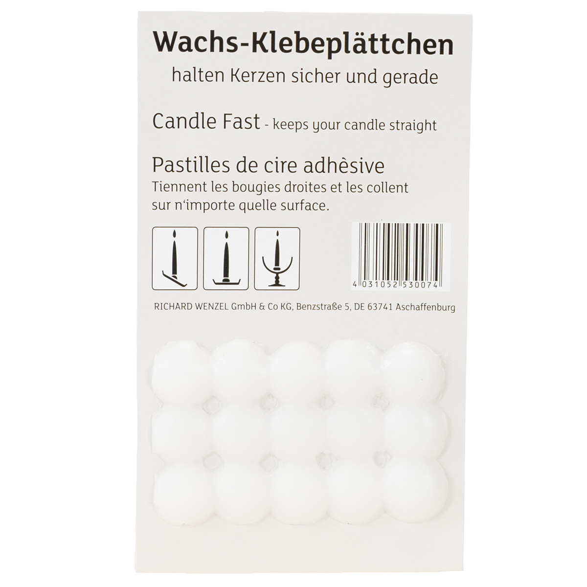To znamená, že nalepovacie sviečky a kužeľové sviečky v stolových dekoráciách a aranžmánoch môžete konečne postaviť krásne rovno a bezpečne – aj keď je svietnik v skutočnosti príliš veľký. Pre stĺpové sviečky použite jednu až tri lepiace dosky v závislosti od veľkosti. Lepiaci vosk v podstate môžete použiť na pripevnenie takmer všetkých sviečok, dokonca aj na prilepenie sviečok na naklonený povrch.