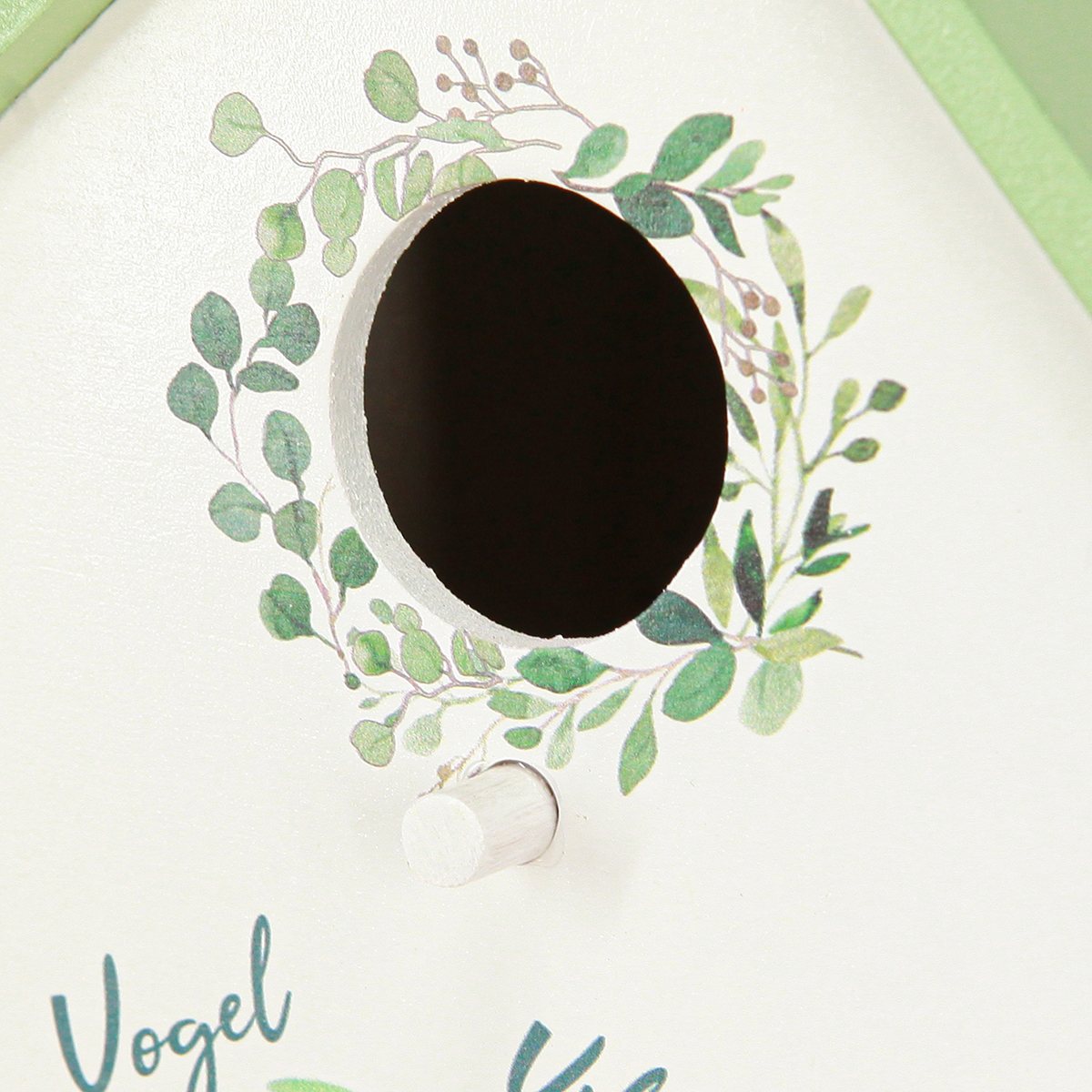 Táto vtáčia búdka nie je len dekoratívnym prvkom; je to malý poklad pre každého, kto oceňuje očarujúce detaily. Svieža zelená strechy dokonale ladí s jemnou bielou drevenou fasádou, zdobenou jemnými kvetinovými motívmi. Evokuje čaro útulných vidieckych domov a bezproblémovo zapadá do vintage alebo rustikálneho dekoru. S výškou 21 centimetrov vyzerá skvele na každom parapete alebo stene a okamžite upúta pozornosť. A čo je najlepšie? Je čisto dekoratívna, vďaka čomu je ideálna na vnútorné použitie. Láskavé remeselné spracovanie je jasne viditeľné, vďaka čomu je každá vtáčia búdka jedinečným kúskom. Je obzvlášť pôvabná na jar a v lete: umiestnite ju pred vázu s čerstvými kvetmi alebo pridajte tento očarujúci dotyk na jarné prestieranie. A povedzme si úprimne, kto by nemiloval trochu viac kvetinovej krásy a prírodných prvkov vo svojom dome? Rekonštrukcia je hračka: jednoducho otvorte zadnú časť, pridajte malé doplnky alebo kvetinové aranžmány a okamžite zažiari sviežim novým vzhľadom. Vtáčia búdka je tiež skvelým nápadom ako špeciálny darček, pretože je individuálna, praktická a nadčasovo krásna.