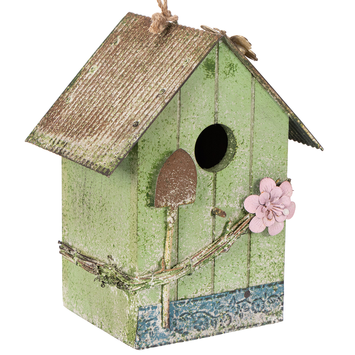 Vtáčia búdka s kvetinovou výzdobou, romantická dekorácia vidieckeho domu, 19 cm