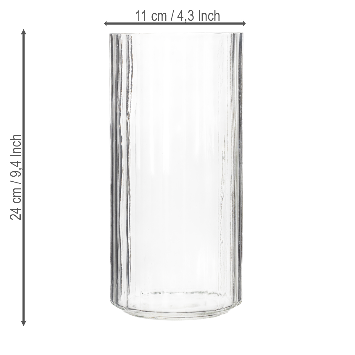 Táto dekoratívna sklenená váza kombinuje minimalistický štýl s praktickou všestrannosťou. Priehľadné sklo s prirodzenou rebrovanou textúrou je decentné a zároveň podmanivé. Jemne a elegantne láme svetlo a krásne zvýrazní akýkoľvek kvetinový aranžmán. S priemerom 11 cm a výškou 24 cm je ideálna na rôzne kvety a konáre, ale perfektne sa hodí aj k sušeným kvetom alebo moderným DIY aranžmánom. Na jedálenskom stole je skutočným pútačom pozornosti a dodá vstupnej hale teplý a príjemný nádych. A viete, čo je obzvlášť skvelé? Skombinujte ju s inými sklenenými vázami rôznych výšok a vytvorte harmonický celok.