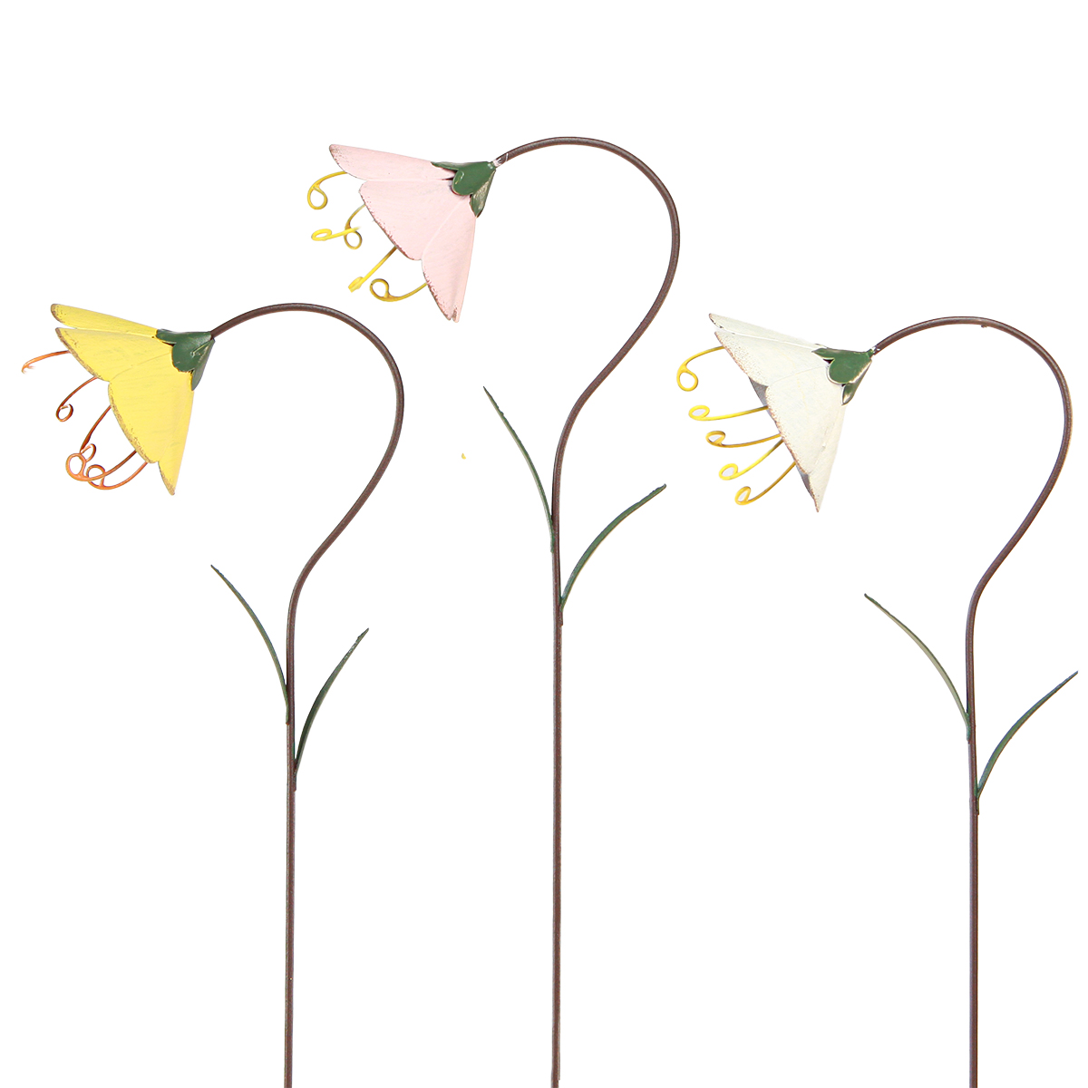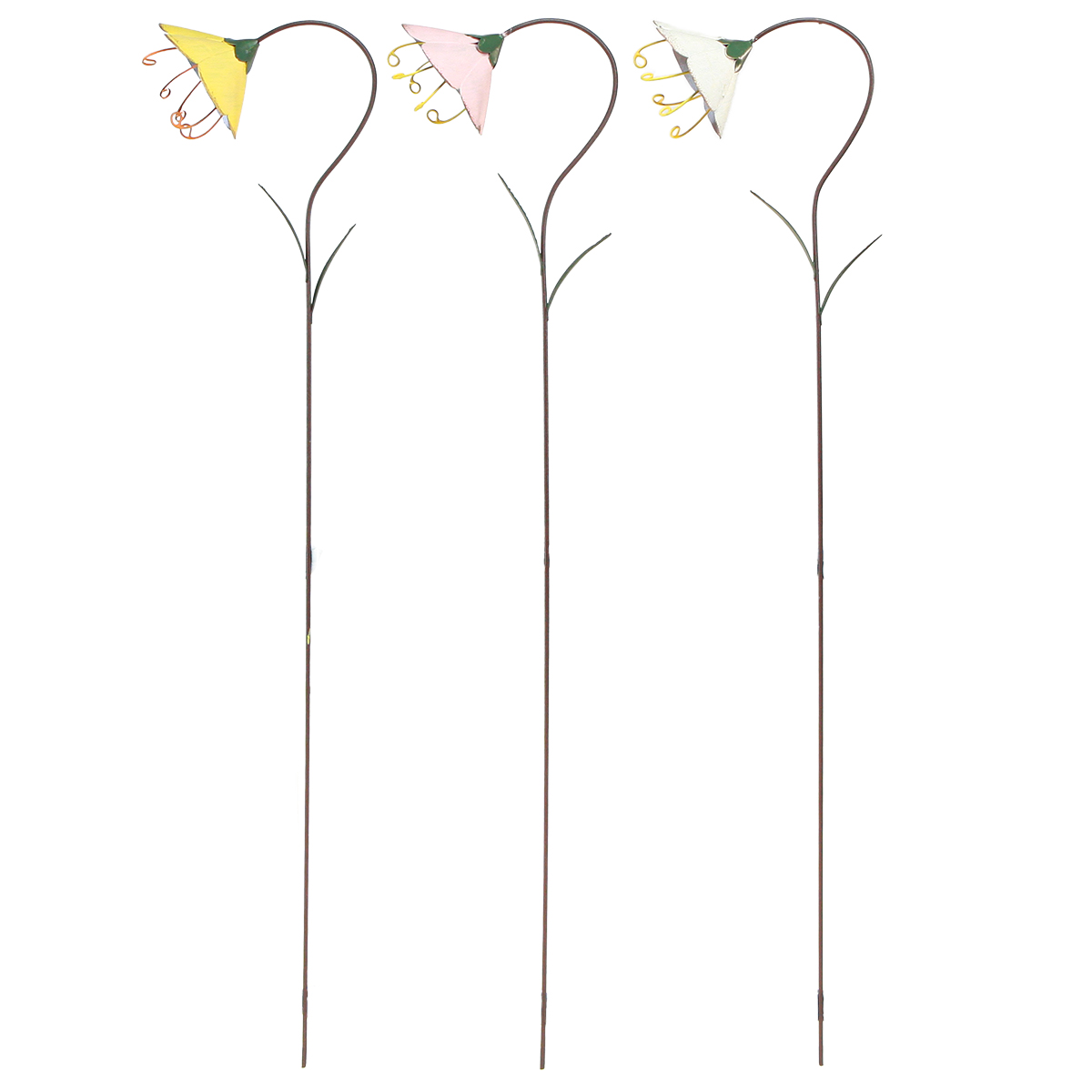 Záhradný kolík Kvet Kovové kvety Žlté Ružové Biele 49cm 3 ks
