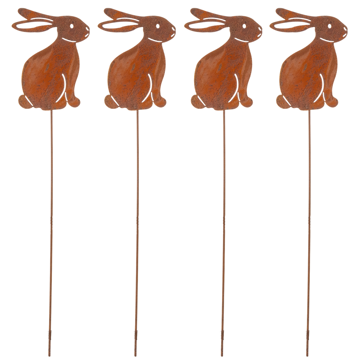 Záhradný králik na veľkonočnú dekoráciu s hrdzavou povrchovou úpravou vo vidieckom štýle 60 cm 4 ks