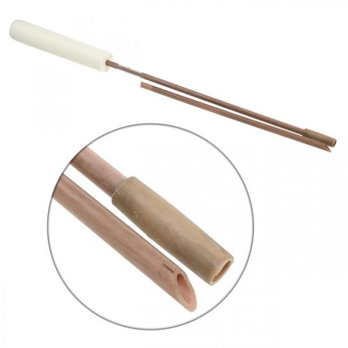 Ako záhradná dekorácia svieti LED solárna sviečka atmosféricky z kríkov. Solárne svetlo je v tvare sviečky na dlhej svetlohnedej plastovej tyčinke. LED žiarovka je detailne vymodelovaná do tvaru plameňa sviečky.