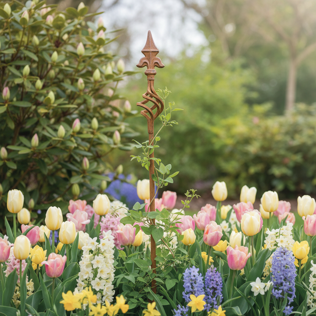 Záhradný kolík ako lezecká pomôcka pre štýlovú záhradnú dekoráciu s dekoratívnym prvkom