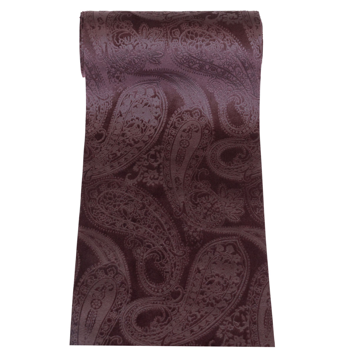 Krásna látka je na dotyk ako zamat a je na nej vyrazený detailný paisley vzor. Zatiaľ čo sa zamatová stuha v baklažáne trblieta, vzor pôsobí o niečo svetlejšie, a preto na svetle obzvlášť dobre vynikne.