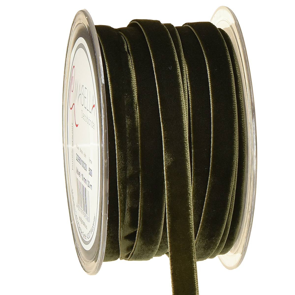 Zamatová ozdobná stuha v tmavozelenej farbe je navinutá na plastovej cievke, ktorú je možné vďaka tunelu zavesiť, aby ste stuhu ľahšie rozvinuli. Šírka textilného pásu je asi 10 milimetrov s dĺžkou asi 20 metrov.