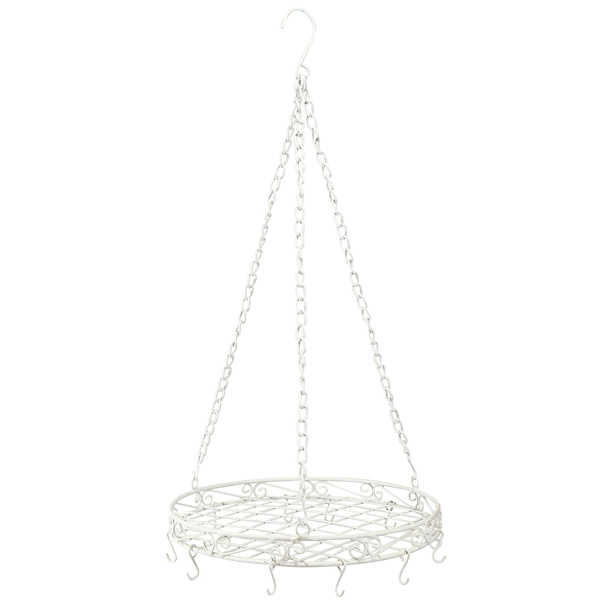 Závesný dekoračný kovový podnos s háčikmi v bielej farbe Ø29,5cm V55cm