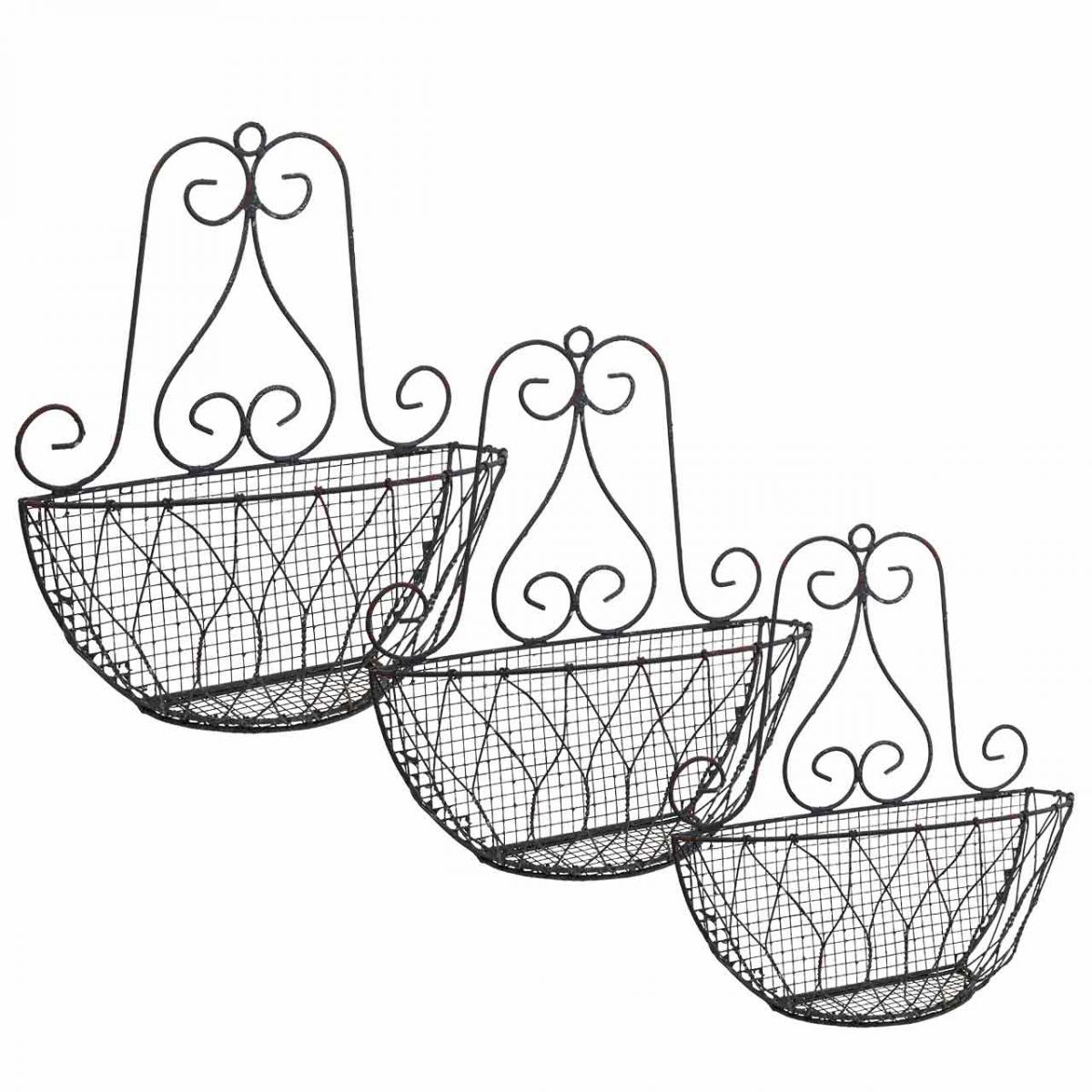 Závesný kôš na rastliny kovový vzhľad hrdze H30/33,5/40cm sada 3 ks