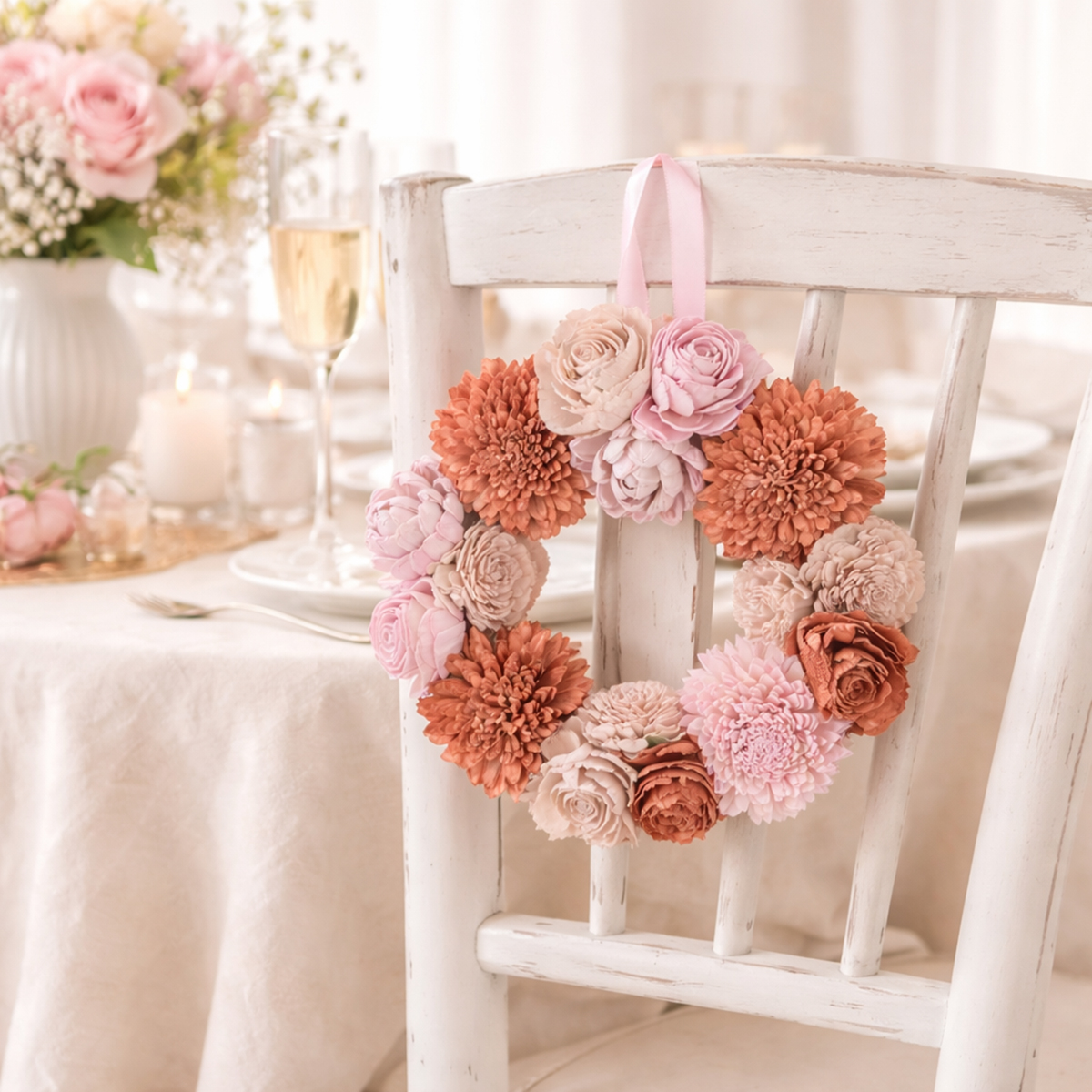 Dodajte svojmu domovu nádych romantiky a elegancie! Tento závesný ružový kvetinový veniec vytvorí rozprávkový akcent v každom obytnom priestore a podporí harmonickú atmosféru. Či už je vystavený na stene v obývacej izbe, ako stredobod stola alebo dokonca ako dekorácia dverí, prírodné farby a očarujúci dizajn tohto dekoratívneho venca vyrobeného z dreva Sola vytvárajú štýlovú bytovú dekoráciu. S priemerom 25 centimetrov a jemným ružovým odtieňom je veniec ideálny na slávnostné príležitosti, večierky alebo svadby, ale aj ako očarujúci každodenný doplnok do domácnosti.