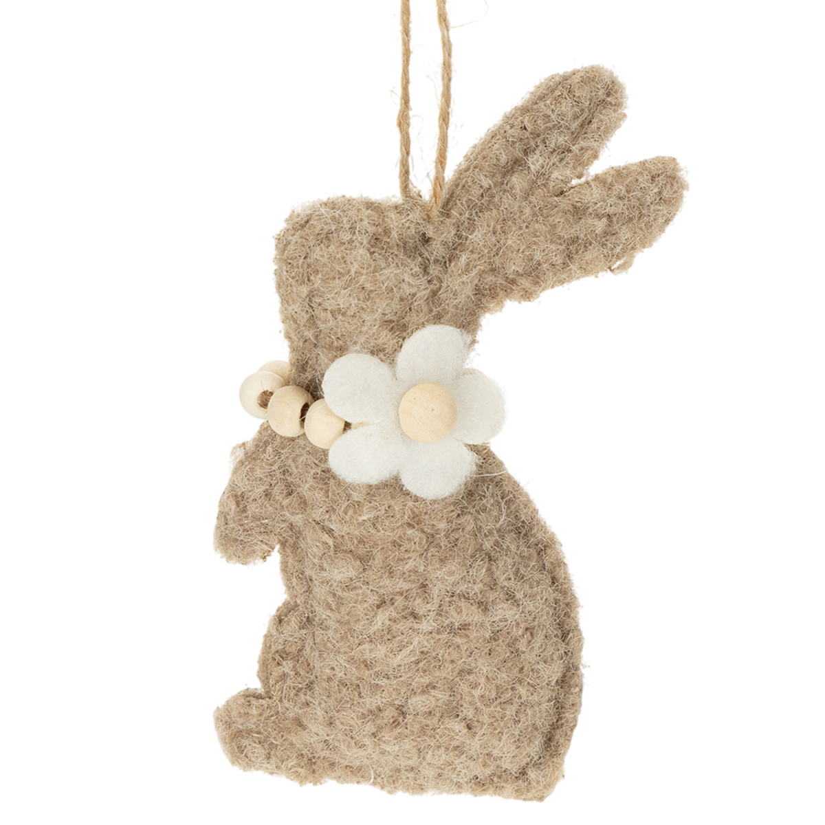 Táto závesná dekorácia v tvare veľkonočného zajačika vyrobená z vysoko kvalitnej plsti je nielen dekoratívna, ale aj úžasne všestranná. Každý zajačik je ozdobený jemnými detailmi, ako je napríklad filigránsky kvietok na krku. Prírodné béžové a krémové odtiene sa dajú krásne kombinovať s inými dekoratívnymi prvkami, od žiarivých veľkonočných vajíčok až po sviežu zeleň.