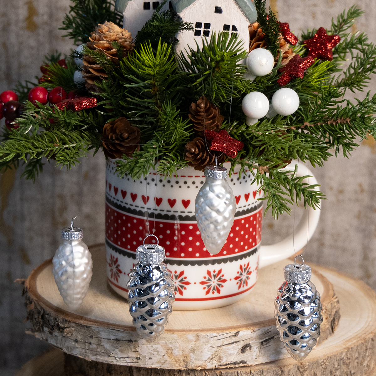 Názov produktu: Zmes sklenených kornútkov strieborných 5cm 14 ks