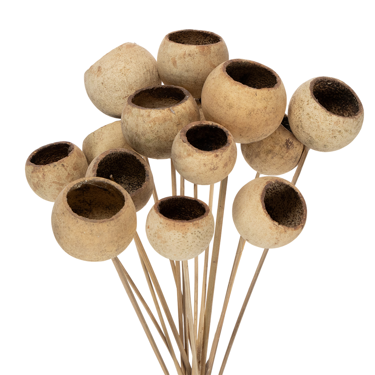 Pohár zvončeka svojim jedinečným tvarom pripomína vydlabanú ozdobnú tekvicu a je preto obľúbenou súčasťou obzvlášť prírodnej dekorácie. Tento Bell Cup Mix na paličke v prírodných farbách má aj tú výhodu, že vydlabané plody v rôznych veľkostiach sú pripevnené na stabilné drevené paličky a dajú sa teda ľahko a mnohostranne spracovať. Stonky zafixujte napríklad do peny a dodajte rustikálnym jesenným aranžmánom veľmi zvláštny nádych.